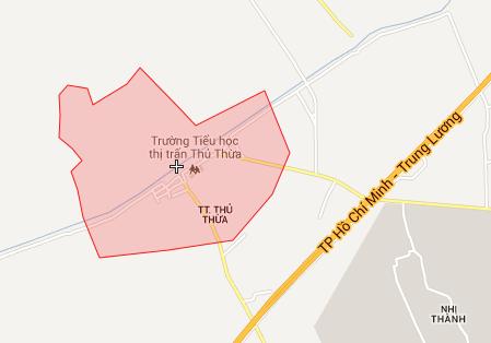 Thị trấn Thủ Thừa có phía Bắc giáp xã Tân Thành, phía Nam giáp xã Bình Thạnh, phía Đông giáp xã Tân Thành và xã Nhị Thành, phía Tây giáp xã Bình An.
