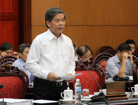 | Bộ trưởng Tài nguyên Môi trường Nguyễn Minh Quang trình bày tờ trình dự luật trước Ủy ban Thường vụ Quốc hội sáng 17/9. Ảnh: Nguyễn Hưng. |