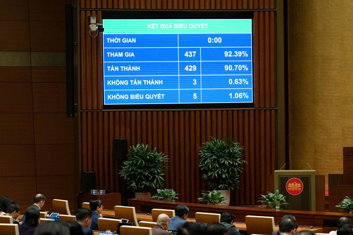 Chiều 10/12, Quốc hội đã biểu quyết thông qua Nghị quyết về điều chỉnh Quy hoạch tổng thể quốc gia thời kỳ 2021 - 2030, tầm nhìn đến năm 2050 với 100% đại biểu Quốc hội có mặt tán thành.