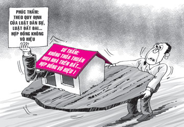 Sau đó, tòa cấp phúc thẩm cho rằng hai bên đã thỏa thuận, hoàn toàn tự nguyện khi thực hiện giao dịch mua bán, chuyển nhượng tài sản. Hợp đồng không trái đạo đức xã hội. Mục đích và nội dung giao dịch không trái pháp luật. Bà D. đã giao tiền, đã đăng ký quyền sử dụng đất nên hợp đồng đã hoàn thành... Do đó, theo quy định của luật dân sự và luật đất đai, hợp đồng mua bán trên không vi phạm nên không bị vô hiệu. Vợ chồng ông A. không giao tài sản là có lỗi làm cho hợp đồng không thực hiện được... Tòa tuyên sửa án sơ thẩm, buộc vợ chồng ông A. phải bồi thường cho bà D. 700 triệu đồng.