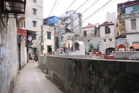 Đấy là “một góc” nghĩa địa còn sót lại của dân làng Quan Hoa cũ. Trước, khi làng chưa lên phố, khu nghĩa địa nằm ở rìa làng, tiếp giáp với đoạn sông Tô Lịch (hướng đường Bưởi) và một con kênh nhỏ chạy song song với đường Nguyễn Khánh Toàn bây giờ.