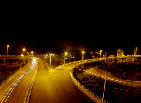 | Cầu Vĩnh Tuy ban đêm. Ảnh: Vũ Thành Kông. |