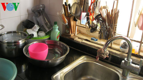 Các gia đình khác không có điều kiện lắp đặt máy lọc vẫn phải dùng nước trực tiếp từ bể của tòa nhà chảy xuống.