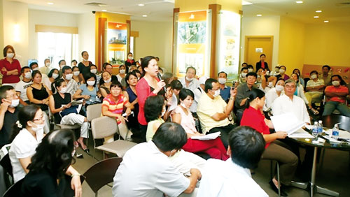 Một cuộc họp giải quyết tranh chấp giữa cư dân và chủ đầu tư.
