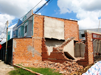 Một căn nhà tại ấp Tam Đông 1, xã Thới Tam Thôn (huyện Hóc Môn) theo kiểu “Một giấy phép xây nhiều căn nhà” bị buộc tháo dỡ. Ảnh: HOÀI NAM