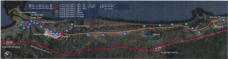 Tuyến kết nối ga đường sắt tốc độ cao với ga Đà Nẵng theo hình thức LRT, có chiều dài 12,3 km; tuyến Hội An – Sân bay Chu Lai theo hình thức MRT, có chiều dài khoảng 70 km, cùng các tuyến khác theo đề xuất của nhà đầu tư, nhằm từng bước hình thành mạng lưới giao thông công cộng khối lượng lớn, kết nối liên hoàn giữa đô thị trung tâm, đô thị vệ tinh và khu vực phía Nam.