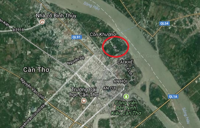 Khu đô thị và vui chơi giải trí tại cồn Khương có phía Đông Bắc giáp sông Hậu; Phía Đông Nam và Tây Nam giáp rạch Khai Luông; Phía Tây Bắc giáp đường Nguyễn Văn Cừ.