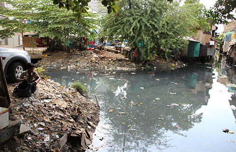 Khu vực rạch Hàng Bàng, nơi có hàng trăm hộ dân phải giải tỏa để thực hiện dự án chống ngập. Ảnh: T.THANH