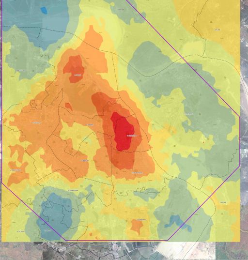Theo kết quả nghiên cứu của TS Hoàng Hữu Phê, vùng có giá nhà cao nhất Hà Nội (màu đỏ sẫm) là xung quanh khu vực hồ Gươm.