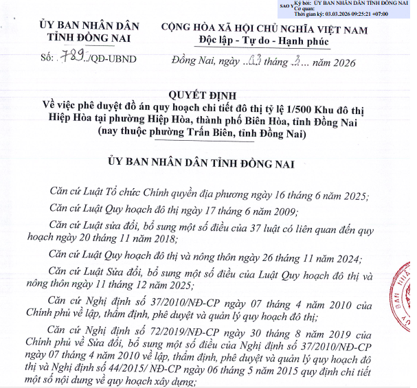 Ngày 4/2/2026, Chủ tịch UBND tỉnh Đồng Nai đã ký ban hành Quyết định số 478/QĐ-UBND về việc thành lập Tổ công tác hỗ trợ địa phương và các đơn vị liên quan trong công tác bồi thường, giải phóng mặt bằng (GPMB) đối với dự án Khu đô thị Hiệp Hòa. Đây là động thái quyết liệt của tỉnh nhằm tháo gỡ vướng mắc, đẩy nhanh tiến độ triển khai siêu dự án đô thị có tổng mức đầu tư hơn 72.000 tỷ đồng trên cù lao Hiệp Hòa, phường Trấn Biên.