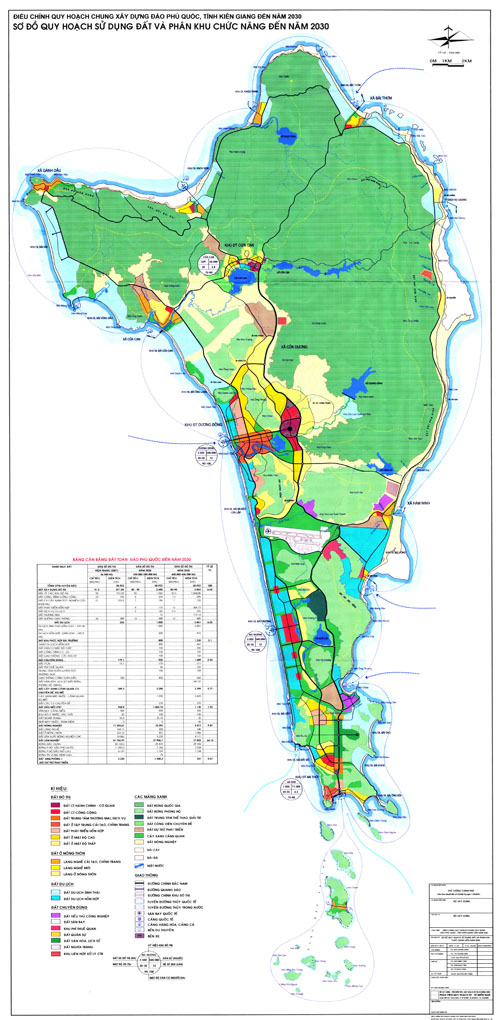 Về quy mô sử dụng đất đai toàn đảo đến năm 2030 được điều chỉnh như sau: Đất du lịch khoảng 4.003 ha; Đất khu phức hợp du lịch, dịch vụ dân cư khoảng 3.325 ha; Đất lâm nghiệp khoảng 37.430 ha, trong đó, đất rừng phòng hộ đảo Phú Quốc khoảng 6.666 ha; Đất nông nghiệp khoảng 3.953 ha, trong đó, đất sản xuất nông nghiệp khoảng 2.719 ha, đất ở nông thôn làng nghề khoảng 1.234 ha.