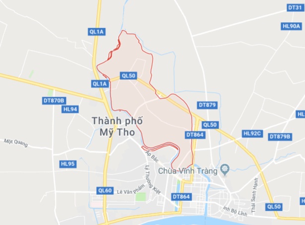 Xã Đạo Thạnh, TP. Mỹ Tho có phía Tây giáp sông Bảo Định và phái Đông giáp Quốc lộ 50