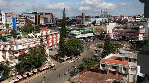 | Một góc của khu Hòa Bình và chợ Đà Lạt hiện hữu |
