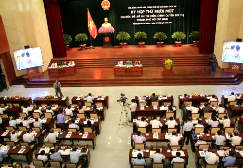 Kỳ họp thứ 11 của HĐND TP HCM khóa VIII với chuyên đề "Đề án thí điểm chính quyền đô thị TP HCM" được tổ chức ngày 27/9. Ảnh: Hữu Công