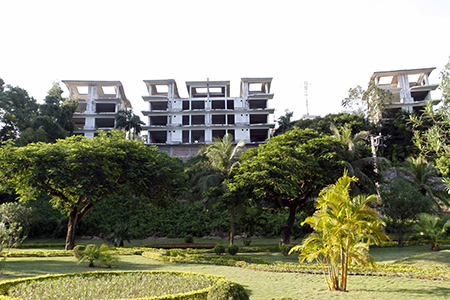 | Lô nhà biệt thự khách sạn Sông Đà ở khu du lịch Bãi Cháy (khởi công từ năm 2003), đến nay trở thành khu nhà hoang tàn. |