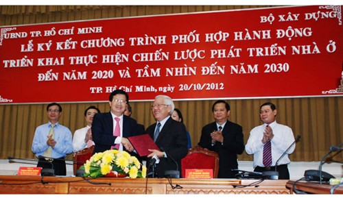 Bộ trưởng Bộ Xây dựng Trịnh Đình Dũng và Chủ tịch UBND TP.HCM ký kết Chương trình phát triển nhà ở TP.HCM đến năm 2020 và tầm nhìn đến 2030