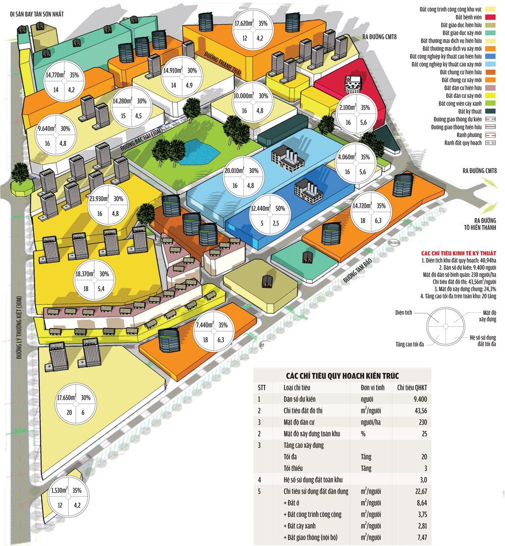 Bố trí trường học, nhà văn hóa phường và UBND phường 6, quận Tân Bình tại lô A4 có diện tích 2.330 m2;
