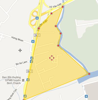 Khu dân cư phía Đông Quốc lộ 1 có phía Đông rạch Nước Lên, phía Tây giáp Quốc lộ 1 (Quốc lộ 1A cũ), phía Nam giáp sông Chợ Đệm, phía Bắc giáp đường Võ Văn Kiệt.