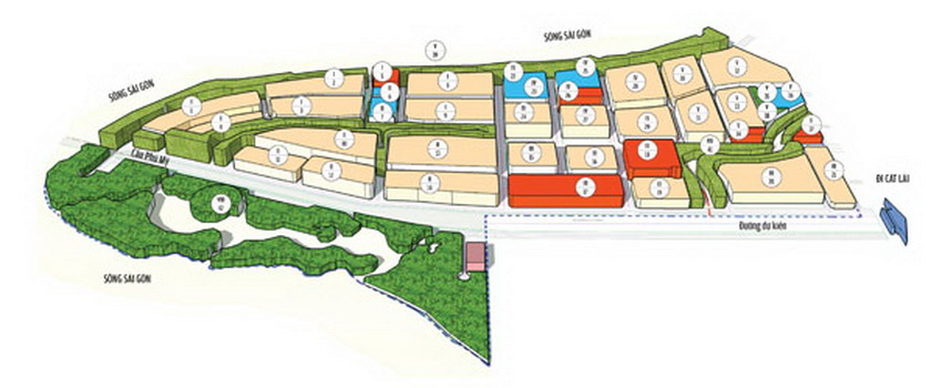 Khu vực tiếp giáp sông, rạch phải nghiên cứu đề xuất phát huy ưu thế địa hình sông nước, tạo không gian mở hài hòa với cảnh quan chung tại khu vực; phát triển mô hình công trình thấp tầng với mật độ xây dựng thấp, các công trình cao tầng được bố trí dọc đường Vành đai phía Đông.