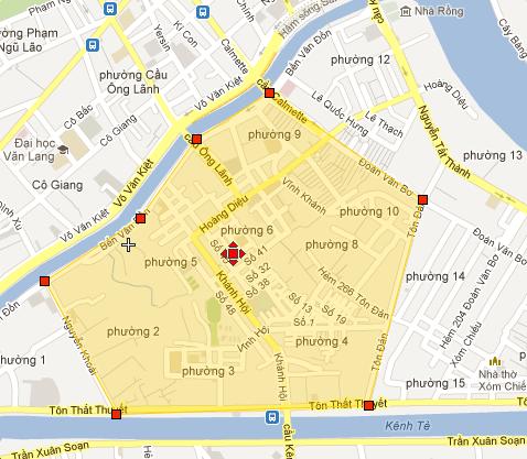 Khu dân cư liên phường 2 - 10 quận 4 có phía Đông giáp đường Đoàn Văn Bơ và Tôn Đản; phía Tây giáp đường Nguyễn Khoái; phía Nam giáp Kênh Tẻ; phía Bắc giáp Kênh Bến Nghé.
