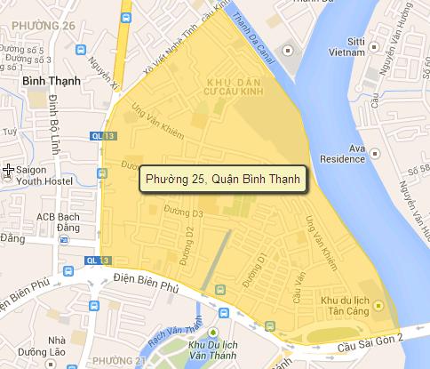 Khu dân cư phường 25, quận Bình Thạnh có phía Đông và Đông Bắc giáp sông Sài Gòn, phía Tây và Tây Bắc giáp đường Xô Viết Nghệ Tĩnh, phía Nam giáp đường Điện Biên Phủ, phía Bắc giáp kinh Thanh Đa.