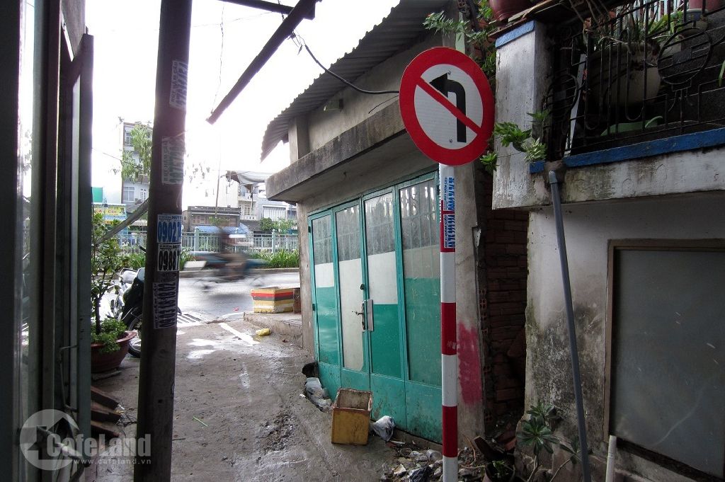 Nhà nghiêng do thi công kênh và đường dọc kênh Tân Hóa - Lò Gốm đến độ không thể mở cửa . Ảnh: Nam Dương