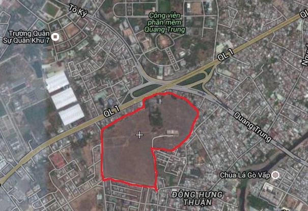 Đài phát sóng Quán tre nằm đối diện Công viên phần mền Quang Trung, đoạn ngay cầu vượt Quang Trung - Quốc Lộ 1A Quận 12