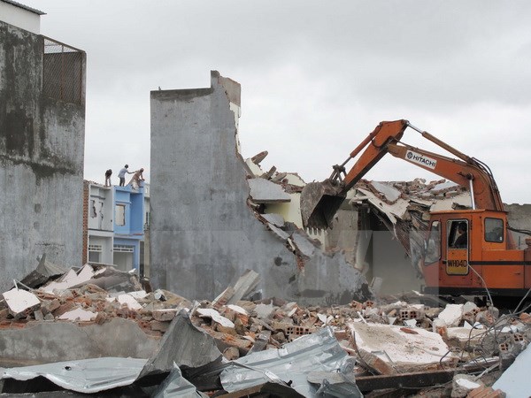 Phá dỡ nhà xây dựng không phép, sai phép tại ấp 1, xã Vĩnh Lộc B, huyện Bình Chánh. (Ảnh: Tràng Dương/TTXVN)