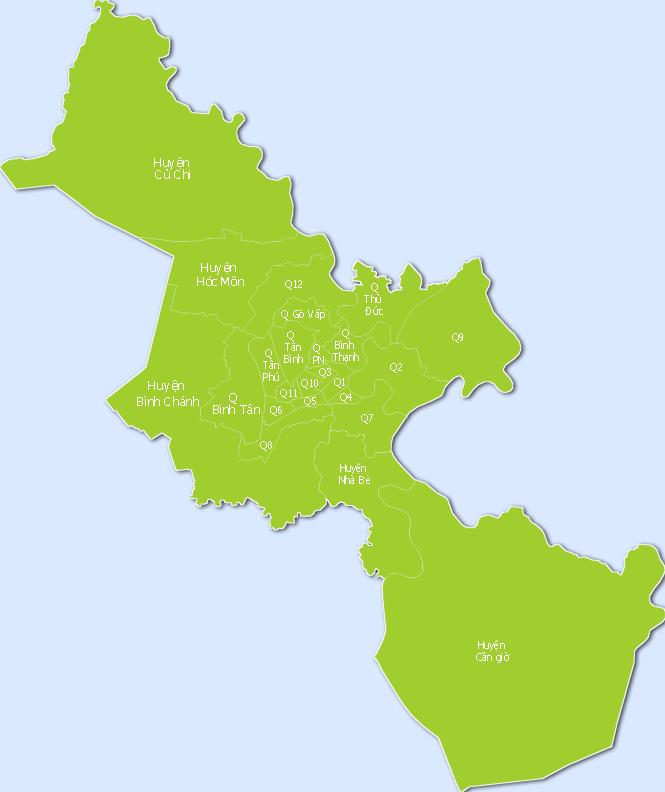Huyện Nhà Bè: Có tổng diện tích 10.055,57 ha, cợ cấu kinh tế chủ yếu là công nghiệp - cảng, thương mại và dịch vụ…, với thế mạnh công nghiệp quy mô lớn gắn liền với hệ thống cảng biển.