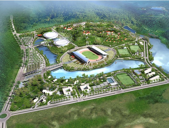 Dự án được xây dựng trên tổng diện tích 51ha, có 3 phân khu chính, gồm các hạng mục đảm bảo tiêu chuẩn của các giải đấu khu vực và quốc tế như: Sân vận động có sức chứa 20.000 khán giả, sân vận động phụ phục vụ luyện tập; Khu nhà thi đấu và bể bơi trong nhà;Trung tâm đào tạo vận động viên với phòng học, nhà quản lý, nhà tập luyện đa năng, ký túc xá cán bộ, học viên; Khách sạn 150 phòng, diện tích xây dựng 6.300m2, 150 phòng, chiều cao tối đa 10 tầng và các hạng mục phụ trợ.