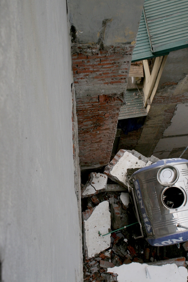 bộ ngôi nhà năm tầng (số 91B) sập, đổ sang phần móng đang đào của ngôi