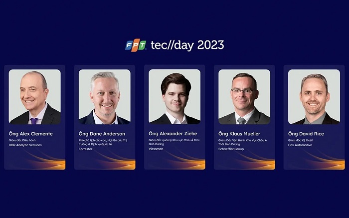 Bên cạnh đó, hội thảo có sự tham gia của lãnh đạo cấp cao đến từ các công ty nghiên cứu thị trường hàng đầu thế giới như ông Alex Clemente - Giám đốc điều hành HBR Analytics Services; ông Dane Anderson - Phó chủ tịch cấp cao, Nghiên cứu Thị trường & Dịch vụ quốc tế, hãng nghiên cứu thị trường Forrester; ông Alexander Ziehe - Giám đốc quản lý khu vực Châu Á Thái Bình Dương, Viessmann; ông Klaus Mueller - Giám đốc Vận hành khu vực Châu Á Thái Bình Dương, Schaeffler Group; ông David Rice - Giám đốc Kỹ thuật, Cox Automotive... cùng lãnh đạo cấp cao của Tập đoàn FPT.