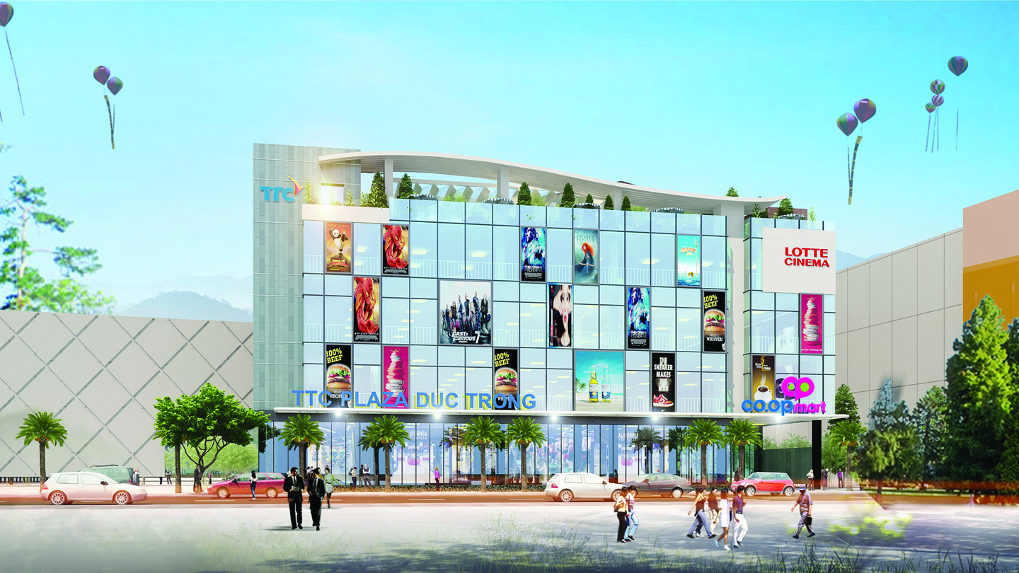 Khu tổ hợp Trung tâm thương mại TTC Plaza Đức Trọng được xây dựng trên tổng diện tích sàn hơn 12.000m2, bao gồm 1 tầng hầm và 4 tầng nổi với đầy đủ các dịch vụ Thương mại, giải trí như thời trang, ẩm thực, khu vui chơi, Rạp chiếu phim, Trung tâm Anh ngữ, Spa, phòng tập Gym… Được biết đây là tổ hợp Trung tâm thương mại lớn nhất của tỉnh Lâm Đồng ở thời điểm hiện tại.