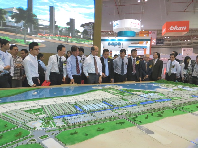 Đại diện Bộ Xây dựng tham quan dự án bất động sản của một doanh nghiệp tại Vietbuild TP.HCM năm 2014.