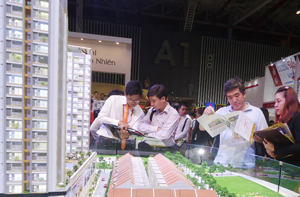 Người dân tìm hiểu thông tin về dự án bất động sản tại một kỳ triển lãm Vietbuild
