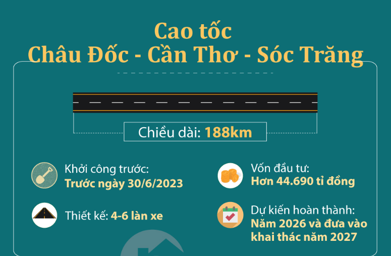 Đường cao tốc Châu Đốc - Cần Thơ - Sóc Trăng dài hơn 188km, điểm đầu kết nối quốc lộ 91 thuộc TP.Châu Đốc, tỉnh An Giang và điểm cuối giao quốc lộ Nam Sông Hậu, kết nối đường dẫn cảng Trần Đề, tỉnh Sóc Trăng.