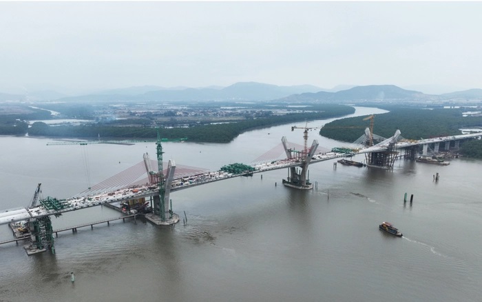 Trước đó, ngày 31/1/2024 cầu đã được hợp long, đang thi công bờ bo, dải phân cách, lan can, điện chiếu sáng và đường dẫn phía bờ Thủy Nguyên. Tổng khối lượng ước thực hiện khoảng 1.700 tỷ đồng (đạt 96% giá trị hợp đồng).
