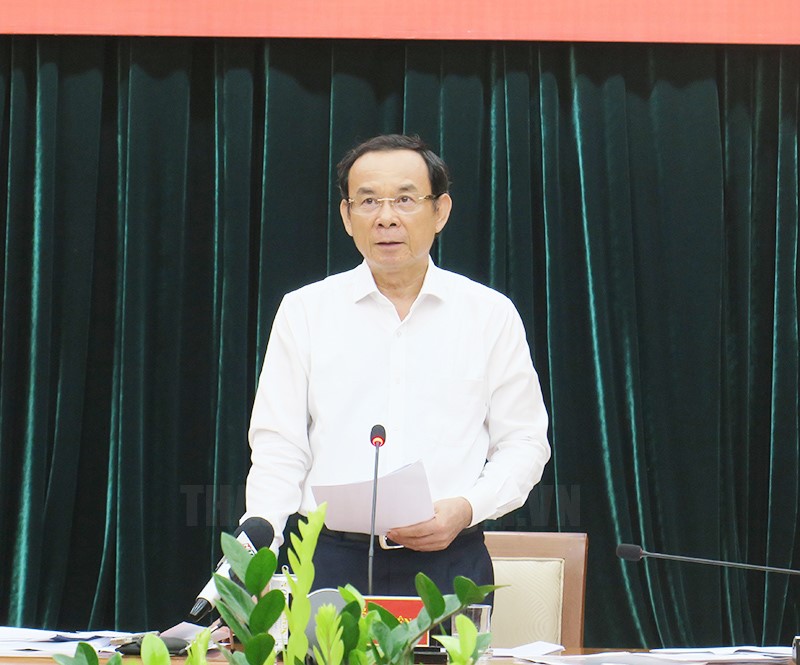 Trưởng Ban Tuyên giáo và Dân vận Thành ủy TPHCM Nguyễn Mạnh Cường phát biểu tại buổi họp