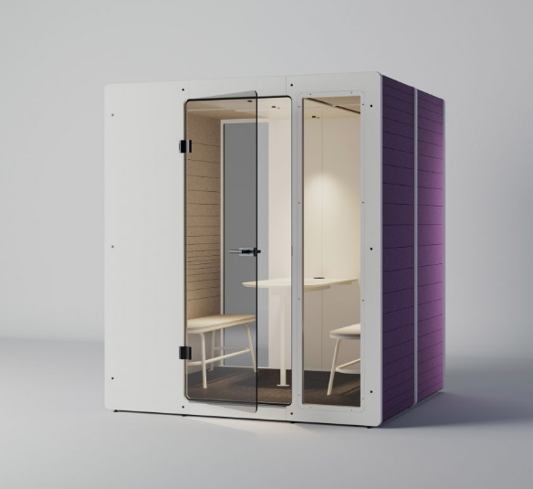 Được làm từ vật liệu tái chế, Impact Acoustic đã tạo ra gian hàng Chatpod 700 để cung cấp một không gian họp yên tĩnh cho tối đa bốn người.
