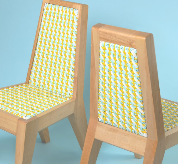 Thay vì sử dụng gậy truyền thống, ghế và tựa lưng dệt của Dina được làm từ nhựa sinh học gốc thầu dầu siêu bền.