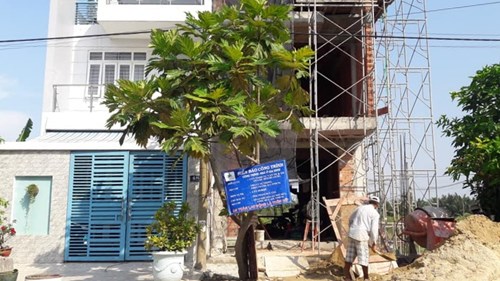 Khu dự án có vài chục căn nhà đã được xây dựng hoàn thiện và một vài căn nhà đang được xây dựng. Phía trước những căn nhà đang xây có treo tấm biển thông tin, nhưng không có hạng mục giấy phép xây dựng.