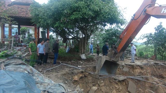 Xe múc thực hiện cưỡng chế phần đất vi phạm.