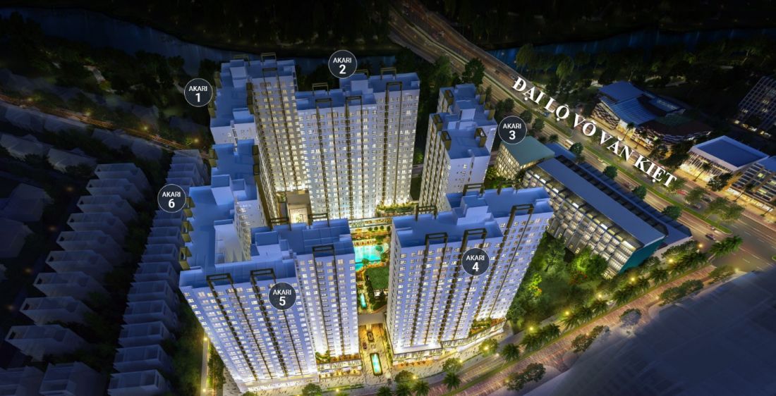 Tọa lạc tại Đại lộ Võ Văn Kiệt (P.An Lạc, Bình Tân), căn hộ chung cư Akari City do Nam Long cùng hai đối tác Nhật (Hankyu Realty và Nishi Nippon Railroad) đầu tư phát triển, nằm trên khu đất 8,56ha với tổng số 4.660 căn hộ. Tổng mức đầu tư 7.676 tỷ đồng.