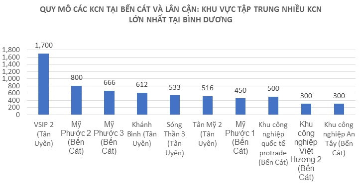 Nếu tính cả khu vực lân cận trong bán kính 10km thì Bến Cát đang có 5/10 khu công nghiệp lớn nhất Bình Dương với 32.000 chuyên gia và 300.000 người lao động.