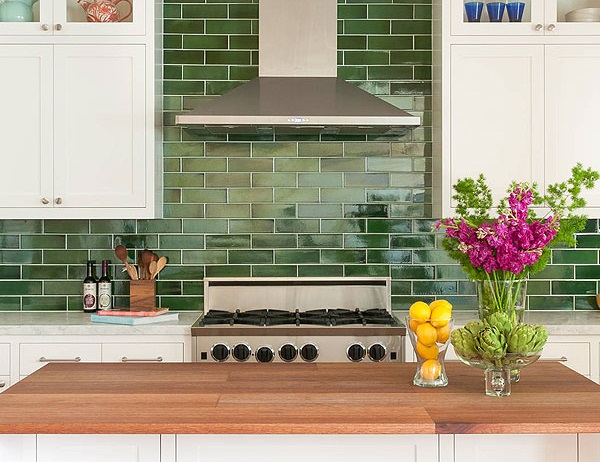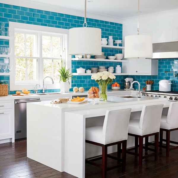 Gạch ốp tường bếp màu xanh mang đến cho bạn không gian dịu mát, mới mẻ.