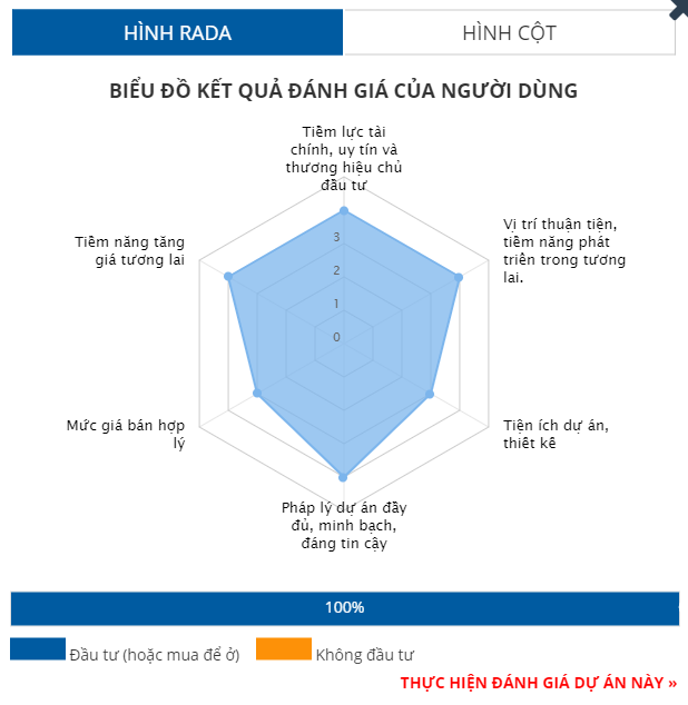 Dựa trên biểu đồ kết quả đánh giá người dùng ở trên, dự án High Intela được đánh giá cao với 4/5 điểm thuộc về tiêu chí: tiềm năng tăng giá trong tương lai; vị trí thuận tiện, tiềm năng phát triển trong tương lai.