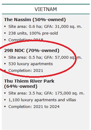 Đối với khu đất 29B Nguyễn Đình Chiểu, thì theo báo cáo kết quả kinh doanh 2017 của Hongkong Land - Tập đoàn có tổng tài sản lên đến 31 tỷ USD, thì nhà đầu tư này đang đầu tư một dự án ở Việt Nam có tên là 29B NDC có diện tích đất 0,5 ha, tổng diện tích sàn xây dựng 57.000 m2 với sản phẩm là 530 căn hộ hạng sang, thời gian hoàn thành dự kiến là năm 2021. Hongkong Land cho biết đang nắm 70% vốn trong dự án này.