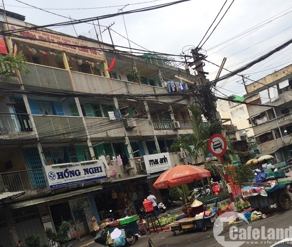 Tại chung cư Nguyễn Thiện Thuật (quận 3), khung cảnh nhếch nhác của các dãy nhà càng thấy rõ. Chung cư ở đây đều đã rệu rã, xuống cấp. Phía bên dưới người dân tận dụng để làm cửa hàng buôn bán, bít cả lối ra vào chung cư.
