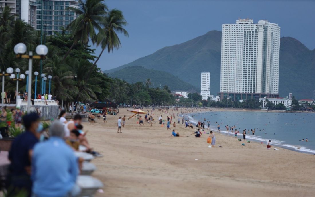 Người dân Nha Trang được vui chơi tắm biển trở lại từ ngày 16/10. Ảnh: Xuân Ngọc.