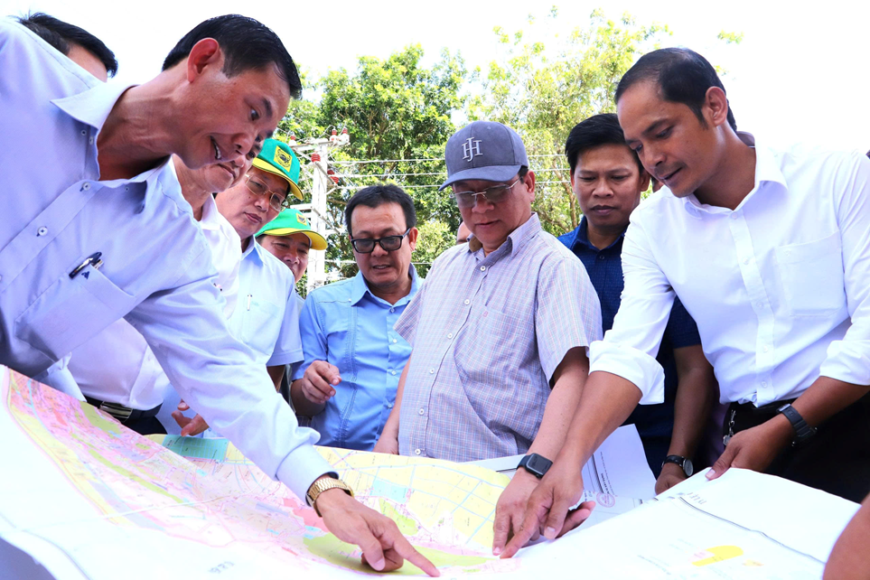 ‘Chủ tịch UBND tỉnh Hồ Văn Mừng khảo sát điểm đầu đường Latina từ tỉnh lộ 948 qua tỉnh lộ 949